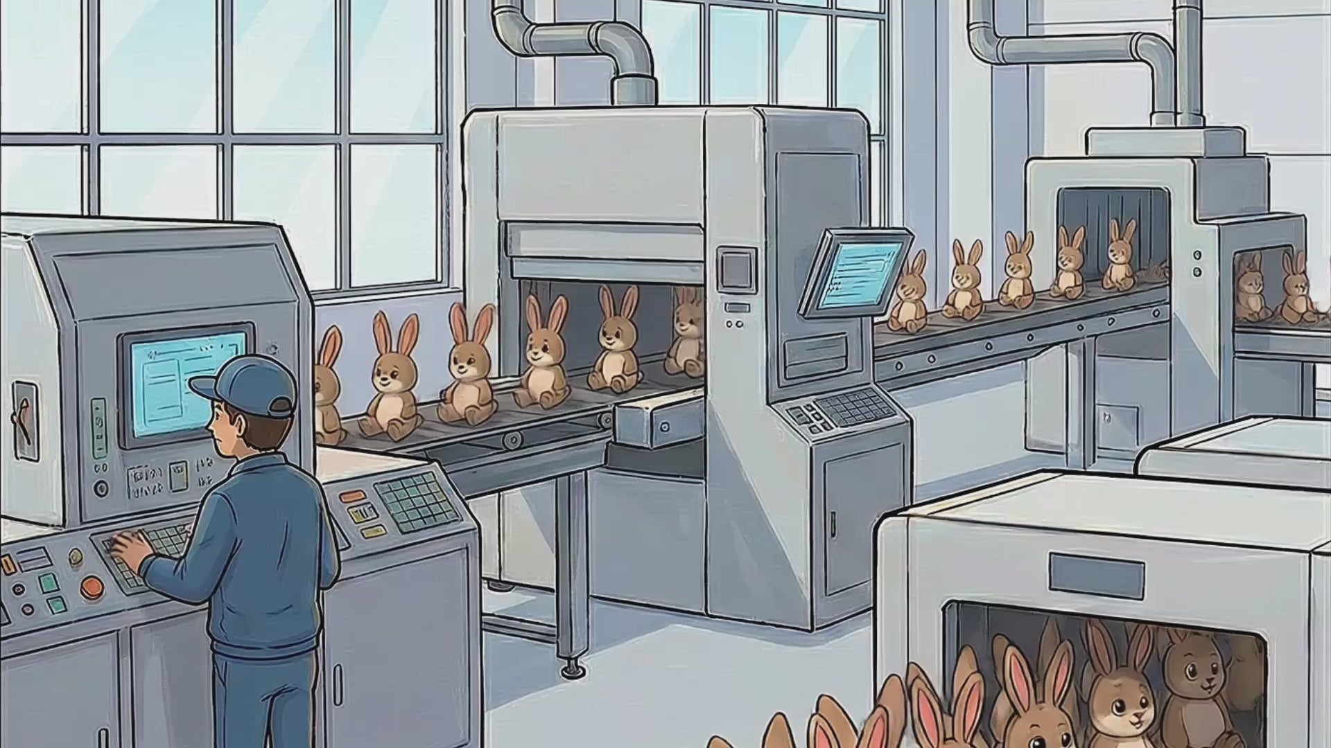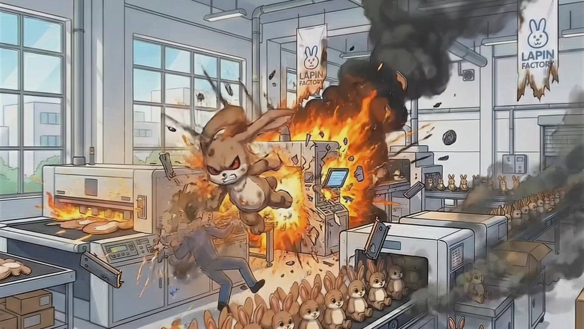 Derrière ces murs d'usine, la perfection était la seule règle. Chaque lapin sortait de la ligne de montage avec la même personnalité programmée : joyeux, docile, artificiel. La Sunshine Bunny Corporation avait bâti son empire sur des émotions de synthèse.